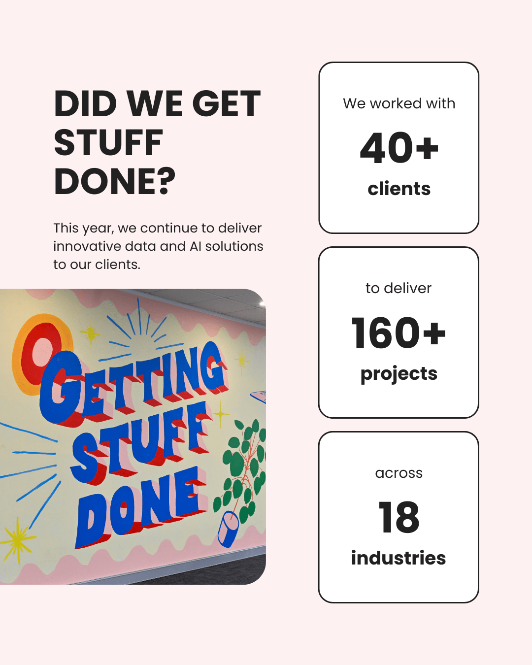 From data visualisation and analytics foundations to advanced AI solutions, we partnered with organisations across Australia to turn messy data into meaningful outcomes. No two projects looked the same but every one was grounded in practical impact.